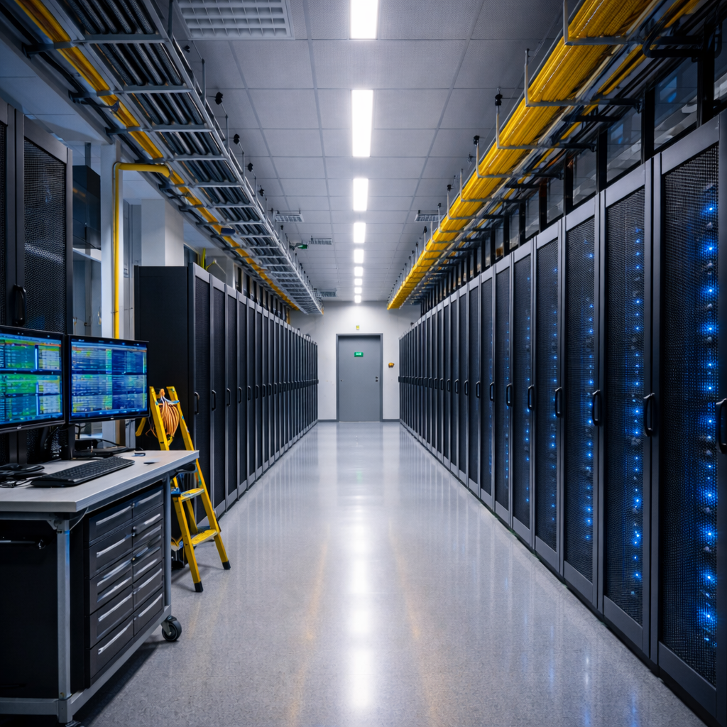 This project focused on upgrading the lighting infrastructure within a modern data center facility that integrates office environments with high-performance technical spaces. The lighting design was developed to enhance visual clarity, support continuous operations, and maintain a cohesive architectural language across both human-occupied and infrastructure-driven areas.
