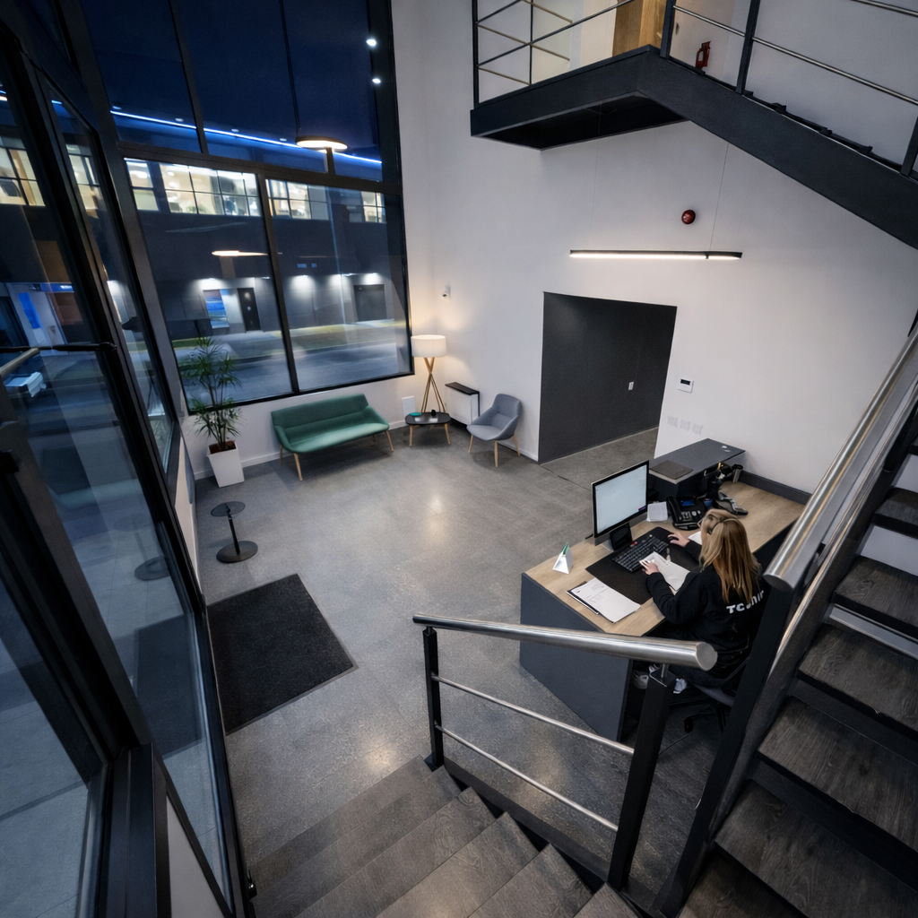 The lighting scope covers both exterior and interior zones essential to the daily operation and identity of the data center. Externally, architectural and perimeter lighting defines building edges, improves nighttime visibility, and supports site security. Internally, the scope includes circulation routes, vertical movement areas, and technical support zones where consistent, glare-controlled lighting is critical. All lighting systems were selected to ensure durability, efficiency, and compatibility with the facility’s continuous-use profile.